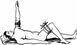 Рис. 33. Наложение шины при переломе бедра