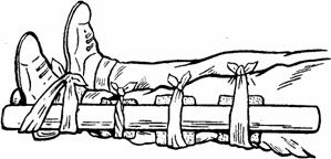Рис. 34. Наложение шины при переломе голени