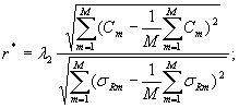 т = 1, ..., M; l = 1, ..., L. 6.2.1.2 На основе полученных значений выборочных дисперсий S2ml ..., S2mL в т-м ОО проверяют гипотезу о равенстве генеральных дисперсий1), используя критерий Кохрена. 1) Дисперсии результатов единичного анализа, полученные в различных лабораториях, имеют различные значения. Предполагают, что для аттестованной методики анализа такие различия между лабораториями невелики и что допустимо установить одно общее (усредненное) значение дисперсии для всех лабораторий, применяющих данную методику. Значение критерия Кохрена Gm (max) рассчитывают по формуле