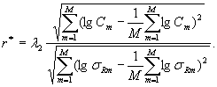 Адекватность экспериментальных данных выбранному виду зависимости проверяют путем сравнения выборочного коэффициента корреляции r*, вычисленного для зависимости соответствующего вида, с табличным значением rтабл (см. таблицу Е.3) при числе степеней свободы f = М - 2.