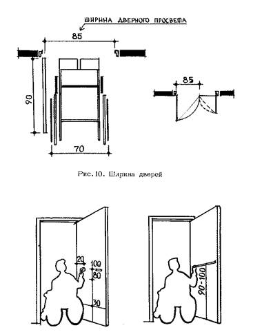 Рис. 5. Площади (в см), необходимые для открывания дверей: А, Б, В - навесных; Г – раздвижных