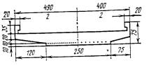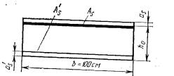 Проверка по грузоподъемности бортов балластных корыт, предусмотренных проектом, не требуется. Проверка усиленных бортов производится по методике, изложенной в типовых решениях («Типовые решения переустройства малых мостов и труб» 501-0-51, МПС, Гипротранспуть, 1975). 4.3. Изгибающий момент от постоянных нагрузок допускается определять без учета их фактической неравномерности по формулам (см. рис. 4.1): для внешней консоли плиты для внутренней консоли плиты для монолитного участка плиты между соседними ребрами где При наличии каких-либо дополнительных нагрузок на внешних консолях плиты их следует учесть в формуле (4.8) с коэффициентом надежности 1,1. 4.4. Предельный изгибающий момент следует определять по формуле где Rb - расчетное сопротивление бетона сжатию, принимаемое по табл. 2.1; b - расчетная ширина плиты, равная 1 м; х - высота сжатой зоны бетона, определяемая по формуле h0 = h - аs - рабочая высота сечения; здесь h - высота сечения; аs - расстояние от центра тяжести растянутой