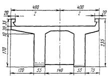 б) для пролетного строения с напрягаемой арматурой (без преднапряженных хомутов)