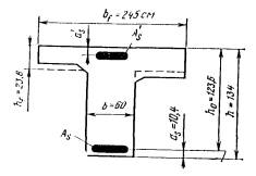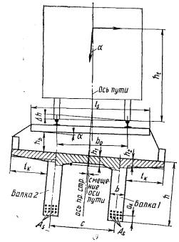 Еb, Es - модули упругости бетона и стержневой арматуры; As - площадь сечения растянутой арматуры; b - толщина ребра; Dh - возвышение наружного рельса; b0 - расстояние между осями головок рельсов;