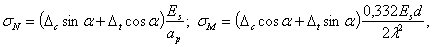 где где a - угол между направлением трещины и стержнем; Es - модуль упругости арматуры, кгс/см2; d - диаметр стержня, см; Ia - момент инерции сечения стержня, см4; R - марка бетона, кгс/см2; ар - условная длина арматурного стержня, принимаемая равной 9 диаметрам для арматуры периодического профиля и 13 диаметрам для гладкой арматуры;