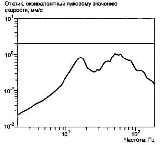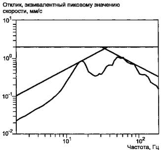 6. Определение условий динамических воздействий в зданияхСогласно настоящему стандарту условия динамических воздействий в зданиях могут быть определены тремя значениями: - скорости; - частоты перехода перемещения; - частоты перехода ускорения. Это записывают следующим образом: Условия динамических воздействий по ИСО/ТС 10811-2: ...мм/с, ...Гц, ...Гц. 7. Сопоставление со стандартами серии МЭК 60721 и VC-кривыми7.1. В МЭК 60721-3-3 [4] условия окружающей среды характеризуются через параметры синусоидальной вибрации: в диапазоне от 2 до 9 Гц - через амплитуду перемещения, в диапазоне от 9 до 200 Гц - через амплитуду ускорения. Данная классификация близка к установленной настоящим стандартом. 7.2. VC-кривые1) (вибрационный критерий) широко используют для описания условий работы микроэлектронного оборудования. Эти кривые имеют область постоянной скорости (выраженной через среднеквадратичные значения в третьоктавных полосах частот) в диапазоне от 8 до 100 Гц. Ниже 8 Гц эти кривые имеют вид линий постоянного перемещения. 1) От английского Vibration Criteria (вибрационный критерий). VC-кривые установлены стандартом международного Института экологии (Institute of Environmental Sciences) IEST RP CC012.1 (1998) «Considerations in Clean Room Design» («Факторы, учитываемые при проектировании чистых помещений»). В таблице 3 приведены значения для области постоянной скорости. Согласно ИСО/ТС 10811-1 соответствующее пиковое значение может быть рассчитано как для синусоидальной волны, так и для случайного сигнала. Эти значения также приведены в таблице 3, причем для случайного сигнала даны оценки для двух третьоктавных полос со среднегеометрическими частотами 8 и 100 Гц, полученные в предположении, что длительность сигнала равна 10 мин. В целом ряде практических случаев метод, установленный настоящим стандартом, также может давать широкий диапазон частот постоянной скорости, и в этом случае классификация по указанному методу становится сопоставимой с классификацией по VC-кривым. Таблица 3 - Параметры VC-кривых