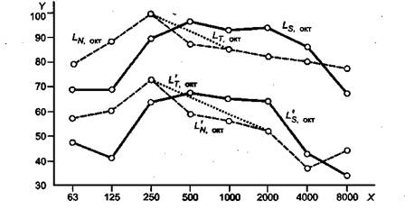 L'T,0KT - уровень октавы маскирующего предела при ношении средств защиты органов слуха.