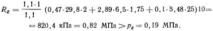 Величины, необходимые для вычисления давления Rz, равны: А = 0,47; В = 2,89; D = 5,48; m1 = 1,1; m2 = 1; kн = 1,1.