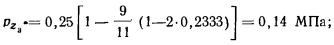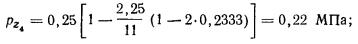 по табл. 2 находим α = 0,2333. Давление на глубине z = 4 м под центром фундамента определяем по формуле (11)