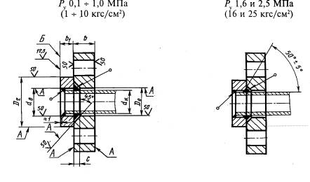 и соединительных частей машин, приборов, патрубков аппаратов и резервуаров на Ру от 0,1 до 2,5 МПа (от 1 до 25 кгс/см2) и температуру