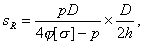 для штампованных колен, изготавливаемых в закрытых штампах, или для гибов, изготавливаемых на станках с нагревом токами высокой частоты и осевым поджатием, прибавка с12 к sR1 должна приниматься в пределах от 0,05s до 0,1s; в этих двух случаях (для гибов из труб, изготавливаемых на трубогибочном оборудовании методом наматывания на сектор, и для штампованных колен) прибавка с12 к sR3 равна нулю, а расчет по внутренней стороне гиба не производится; для колен, изготавливаемых на рогообразном сердечнике, прибавка с равна нулю; для секторных колен прибавка с12 равна нулю; для штампосварных колен с расположением двух продольных сварных швов по внутренней и внешней стороне колена прибавка с12 к sR3 должна приниматься в пределах от 0,05s до 0,1s с учетом jw, если его значение менее единицы; для штампосварных колен с расположением поперечного сварного шва в середине длины колена прибавка с12 к sR3 равна нулю, а прибавка с12 к sR1 должна приниматься в пределах от 0,05s до 0,1s, в этом случае расчет по внутренней стороне колена не производится, так как на этой стороне колено имеет утолщение стенки более значительное, чем величина коэффициента К2. Если определение прибавки с12 производится, когда окончательно не выбрана номинальная толщина стенки колена, то следует задаться ее значением, например, равным значению номинальной толщины стенки прямой трубы согласно пп. 3.3.1.1 - 3.3.1.3, с последующей проверкой по окончательно выбранному значению номинальной толщины стенки колена. 3.3.2.9. Допустимая толщина стенки [s] должна быть не менее определенной по формулам: для колен [s]=sRi+c2, для прямых труб [s]=sR+c2. При определении [s] в условиях эксплуатации значение прибавки с2, определяемое согласно разделу 1, допускается уменьшить пропорционально планируемому ресурсу эксплуатации до замены детали или до очередного контроля толщины стенки. Для тонкостенных колен паропроводов, трубопроводов и наружных перепускных труб диаметром более 200 мм при a£0,03 прибавку с2 следует принимать в пределах от 1 до 3 мм в зависимости от опыта эксплуатации. Применение прибавки менее 3 мм для труб наружным диаметром 500 мм и более должно быть согласовано со специализированными научно-исследовательскими организациями. 3.3.3. Допустимое давление 3.3.3.1. Допустимое рабочее давление в коленах труб котлов и в прямых трубах трубопроводов следует определять по формуле