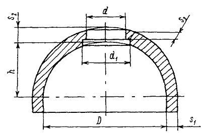 где r=0,095D для днищ эллиптической и торосферической формы. Допускается участок перехода рассматривать по наружной поверхности выпуклого днища. В этом случае формула имеет вид