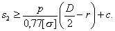 если расчет выполняется по внутреннему диаметру. Примечания: 1. Коэффициент прочности j следует принимать в соответствии с п. 3.2.1.2. 2. Значение прибавки с следует принимать в соответствии с п. 3.2.1.4, при этом с1=(D/100)s. 3.2.2.2. При выполнении контрольных расчетов по данным измерений толщины стенки вместо s-с следует применять sf-с2. Величина sf должна приниматься равной наименьшему значению из четырех измерений толщины по концам двух взаимно перпендикулярных диаметров в одном сечении при числе проверяемых сечений не менее одного на каждые два метра длины барабана (коллектора), но не менее чем в трех сечениях для всего барабана (коллектора). 3.2.2.3. Величина пробного давления при гидравлическом испытании не должна превышать значения, полученного согласно пп. 3.2.2.1 и 3.2.2.2 при замене допускаемого напряжения [s]на [s]h. 3.2.2.4. Величина допускаемого рабочего или пробного давления в барабане или коллекторе не должна превышать соответственно рабочего или пробного давления, допускаемого по условиям прочности для остальных деталей данного барабана или коллектора, в частности для днищ. 3.2.3. Приведенное напряжение 3.2.3.1. Приведенное напряжение в барабанах и коллекторах должно определяться по одной из следующих формул: