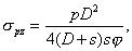 Для бесшовных переходов jw=1. Значение прибавки с должно приниматься согласно п. 3.4.1.3. 3.4.2.2. Величина пробного давления при гидравлическом испытании не должна превышать значения, полученного согласно п. 3.4.2.1 при замене допускаемого напряжения [s] на [s]h. 3.4.2.3. Величина принятого рабочего или пробного давления в трубопроводе не должна превышать наименьшего допустимого значения для каждой из деталей трубопровода, и частности для конических переходов. 3.4.3. Приведенное напряжение 3.4.3.1. Приведенное напряжение от внутреннего давления в коническом переходе должно определяться по следующей формуле: