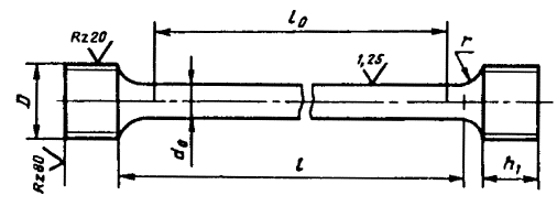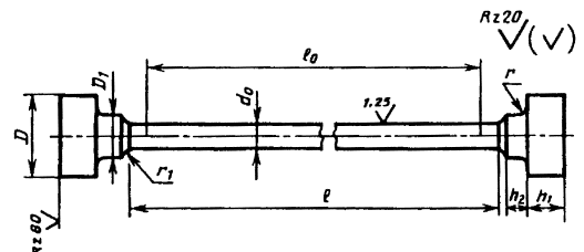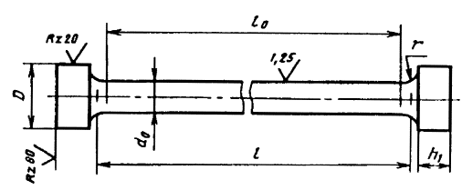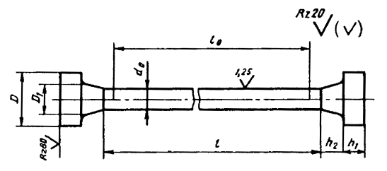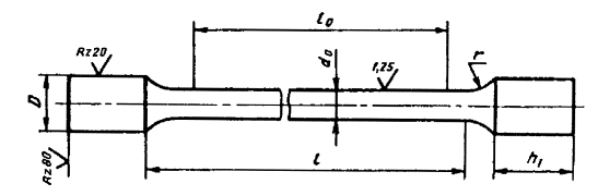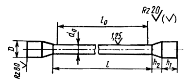 Примечание. При наличии указаний в НТД на металлопродукцию допускается определять предел пропорциональности и предел текучести условный с допуском на величину пластической деформации при нагружении с иными допусками: предел пропорциональности - 10 и 25 %, предел текучести - от 0,005 до 1 %. Величину допуска указывают в обозначении (например, sпц 10, s0,3). При допусках от 0,005 до 0,05 % на величины пластической деформации при нагружении, полной деформации при нагружении, остаточной деформации при разгрузке вместо термина «предел текучести» условный допускается применять термин «предел упругости» с индексацией, установленной для соответствующего предела текучести условного. (Измененная редакция, Изм. № 2, 3). ПРИЛОЖЕНИЕ 2Рекомендуемое ПРОПОРЦИОНАЛЬНЫЕ ЦИЛИНДРИЧЕСКИЕ ОБРАЗЦЫТип1