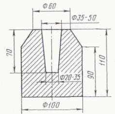 1.1. Для определения химического состава жидкого чугуна от каждого выпуска из печи при равномерной струе из желоба отбирают три пробы: в начале, в середине и в конце выпуска. 1.2. Из каждого ковша при сливе металла отбирают три пробы: после слива около 1/4, 1/2 и 3/4 ковша. 1.3. Пробу отбирают ложкой или пробницей погружением в жидкий металл или под струей металла. 1.4. Масса пробы для химического анализа должна быть не более 1 кг, для спектрального анализа — не менее 0,05 кг. 1.5. Металл заливают в стаканчик - изложницу. Конструкция и размеры стаканчиков-изложниц для химического анализа приведены на черт. 1—6, для спектрального анализа — черт. 1, 7 рекомендуемого приложения 1. 1.6. При заливке не допускается недолив, перелив, разбрызгивание и расплескивание металла, прерыв струи. 1.7. Проба в стаканчике-изложнице должна застывать спокойно. 1.8. После охлаждения пробу извлекают из формы, маркируют номером печи, выпуска и ковша (при разливке чугуна в чушки). 1.9. Проба должна быть без раковин, трещин, спаев и шлаковых включений. Пробу для химического анализа допускается отжигать. 1.10. Поверхность пробы в местах отбора стружки или кусков тщательно очищают от песка, окислов и литейной корки. Шероховатость обработанной поверхности проб для спектрального анализа Rz должна быть не более около 20 мкм по ГОСТ 2789—73. 1.11. Для отбора пробы в виде стружки применяют сверла с углом режущих кромок 120° из быстрорежущей стали или из твердого сплава диаметром 15 мм. 1.12. Стружку отбирают сверлением с небольшой скоростью в средней части пробы, не допуская образования пыли. Сверление проводят без охлаждения сверла. Стружка должна быть толщиной 0,3—0,4 мм. 1.13. Пробу чугуна, который не поддается сверлению, разбивают и отделяют мелкие куски от поверхности скола. 1.14. От каждой пробы отбирают одинаковую массу чугуна. Пробы в виде куска или стружки измельчают до величины зерна не более 0,2 мм, после чего объединяют, усредняют и квартованием сокращают до массы не менее 20 г. Для чугуна, предназначенного на экспорт, масса пробы должна быть не менее 100 г. 1.15. При заливке жидкого металла в стаканчик-изложницу (черт. 7) допускается для химического анализа использовать пробу в виде стерженьков или дисков. При отборе из ковша трех проб измельчают одинаковые по массе или размеру кусочки трех стерженьков. Для спектрального анализа используют пробу в виде дисков. 1.16. Подготовленную для химического анализа пробу помещают в закрывающуюся емкость. 1.17. Пробу для определения химического состава хранят 3 мес. Допускается устанавливать другой срок хранения пробы при применении чугуна внутри предприятия. 1.18. Отбор проб для определения химического состава чугуна в чушках проводят по нормативно-технической документации на конкретную продукцию. 1.19. При отборе проб чугуна в чушках, предназначенного для экспорта, из штабеля или вагона отбирают не менее одной чушки от каждых 3 т. 1.20. Отобранные чушки маркируют, указывая номер штабеля или вагона. 1.21. Поверхность чушек в местах отбора пробы в виде стружки или кусков тщательно очищают от песка, шлака и литейной корки. Пробу в виде стружки отбирают от боковой поверхности, очищенной по п. 1.10, под прямым углом к длинной оси чушки. Первые порции стружки отбрасывают. Для анализа используют стружку, собранную после сверления на глубину 4—6 мм и приготовленную в соответствии с 