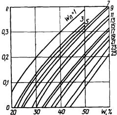 Wн.з - количество незамерзшей воды по отношению к массе скелета грунта, доли единицы; L - удельная теплота плавления льда, Дж/кг; L = 80 Дж/кг; e - вспомогательный параметр, характеризующий осадку грунта при оттаивании (табл. 31)