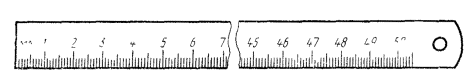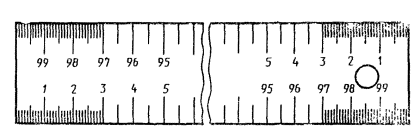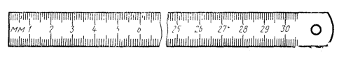 (Измененная редакция, Изм. № 3). 1.3. Разница в длине миллиметровых, полусантиметровых и сантиметровых штрихов должна быть не менее 1,5 мм. 1.4. Разноразмерность длины одноименных штрихов, а также высоты числовых обозначений не должна превышать 0,5 мм. Пример условного обозначения измерительной линейки с пределом измерения 300 мм: Линейка - 300 ГОСТ 427-75 То же, с пределом измерения 1000 мм с двумя шкалами: Линейка - 1000 д ГОСТ 427-75 (Измененная редакция, Изм. № 2). 2. ТЕХНИЧЕСКИЕ ТРЕБОВАНИЯ.2.1. Началом шкалы линейки должна быть торцовая грань, перпендикулярная к продольному ребру линейки. Линейки за последней сантиметровой отметкой шкалы должны иметь не менее пяти добавочных миллиметровых делений. Закругленный конец линейки должен иметь для подвешивания отверстие диаметром не менее 5 мм для линеек с пределами измерений 150, 300 и 500 мм и не менее 8 мм для линеек с пределом измерения 1000 мм и более. Линейки с пределом измерения 1000 мм и более с двумя шкалами должны иметь вторую торцовую грань, перпендикулярную к продольному ребру линейки, и не должны иметь добавочных миллиметровых делений. (Измененная редакция, Изм. № 1, 3). 2.2. Торцовая грань или торцовые грани, служащие началом линейки, должны быть прямолинейны и перпендикулярны к продольному ребру линейки. Отклонение от перпендикулярности не должно превышать ± 10¢. Отклонение от прямолинейности торцовой грани не должно превышать 0,04 мм для линеек с пределами измерений 150, 300 и 500 мм и 0,08 мм для линеек с пределом измерения 1000 мм и более. (Измененная редакция, Изм. № 2, 3). 2.3. Отклонения от номинальных значений длины шкалы и расстояний между любым штрихом и началом или концом шкалы не должны превышать значений, указанных в табл. 2. Таблица 2 мм