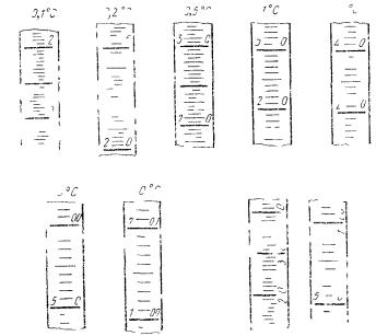 n - число отметок в градусах, соответствующее высоте выступающего столбика.